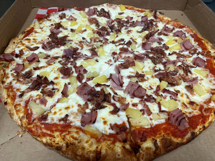 Homemade Marinara, Bacon, Ham, Pineapple, Mozzarella Cheese